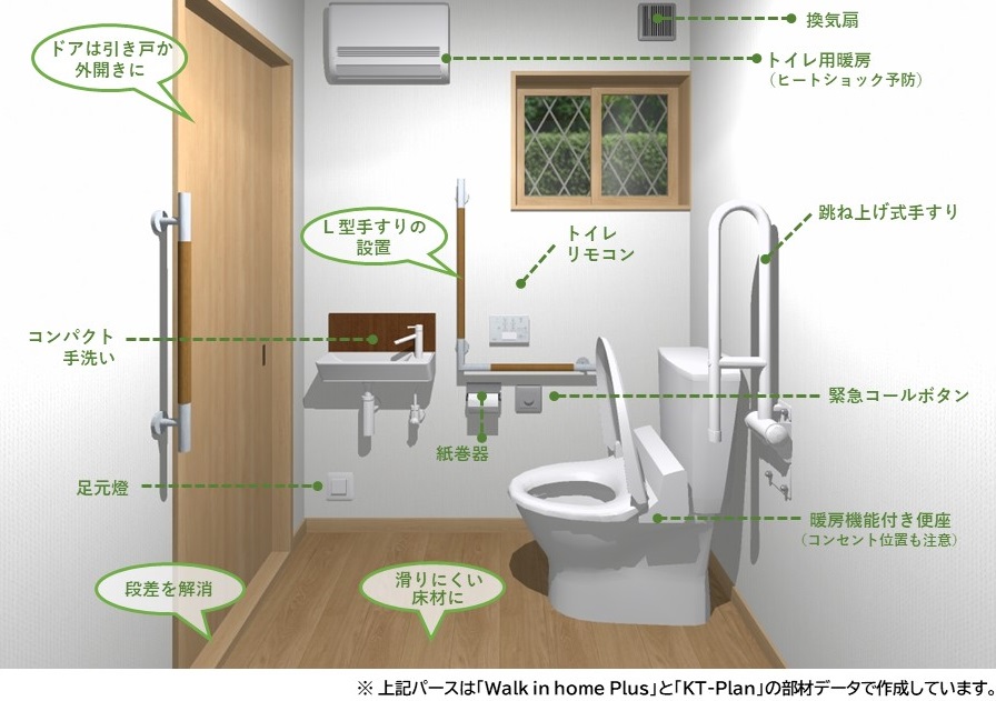 大袈裟と思うかもしれませんが、排泄は人の尊厳を左右するため、トイレの改修は大変重要です。排泄方法をしっかり確認し、必要な広さや設備、機器等を整備することが非常に大切です。