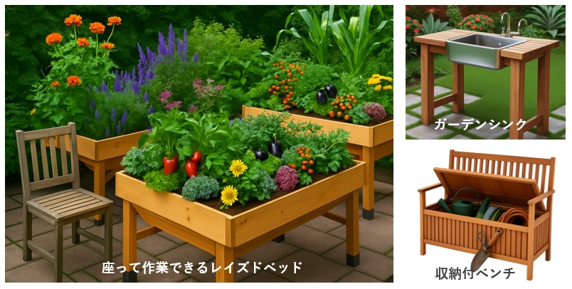 「庭いじりや家庭菜園を、もっと楽に楽しみたい」というご要望は、シニア世代にとって非常に多く、リフォームによって生活の質(QOL)を大きく向上できる可能性があります。お客様へのご提案の際には、単に商品を並べるのではなく、「これがあれば、こんな風に楽になりますよ」「この悩みは、こうすれば解決できます」というように、お客様の未来の姿を想像させるストーリーでお話しすると、より響きやすくなります。 工務店として、安全性・快適性・持続性の3つの観点から、以下のような具体的な提案が考えられます。
